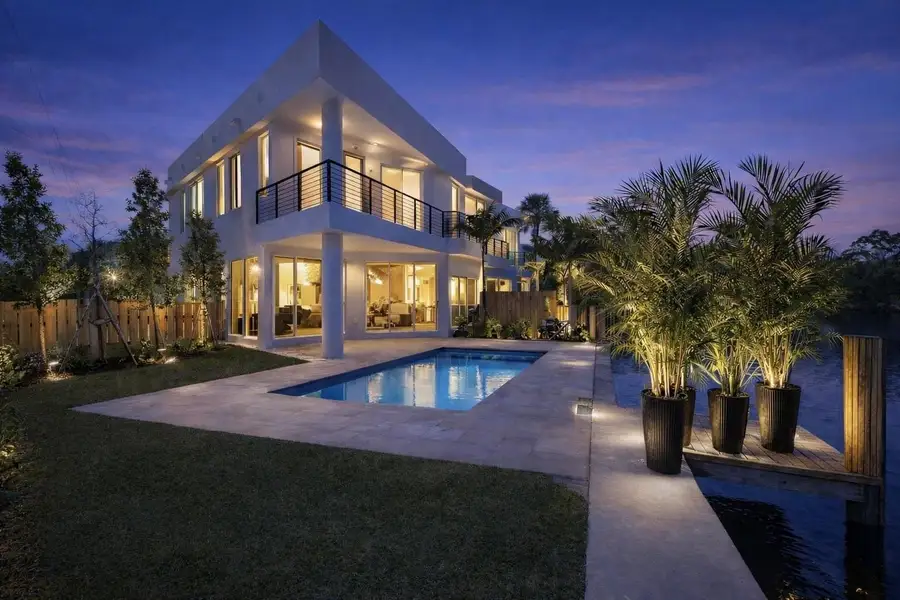 Experience peaceful views of the middle river from this modern waterfront luxury home. This new construction blends sleek design with thoughtful finishes, offering an effortless south Florida lifestyle near the vibrant heart of Wilton Manors. Designer touches include: volume ceilings, floor to ceiling windows, large retractable sliding doors to enjoy indoor/outdoor living, quartz countertops, chef's kitchen with thermador appliances, oversized outdoor living area, private pool, 85' water frontage, 30ft dock wired for electric, lush tropical landscaping, expansive garage with volume ceilings, spacious paver driveway ..... and more! Some photos are digitally staged. All measurements are approximate and should be verified by the buyer.