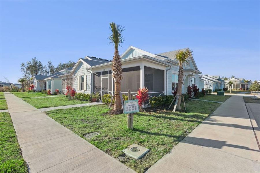 Feel Secure in Paradise! This home offers a truly worry-free coastal lifestyle with big dollar upgrades designed for comfort, efficiency, and peace of mind. Whole-house impact/hurricane-rated windows—including the patio glass—an upgraded impact/hurricane-rated insulated garage door, and enhanced energy-efficient insulation in the block walls ensure both a sense of protection and year-round comfort. Step inside this split-plan Aloha model, the largest of the cottage designs, and you’ll immediately appreciate its refined, Tommy Bahama–inspired finishes. Eight-foot interior doors elevate the space with an understated elegance, while the kitchen reflects thoughtful investment—beautiful 42" wood cabinets wrapped in crown moulding and light rail moulding with pull-out shelves and trash receptacle, soft close doors and drawers plus gorgrous quartz countertops, and upgraded appliances including the refrigerator and range. Paddle fans and striking woven bamboo light fixtures complete the look, blending coastal ease with timeless style. Designed with entertaining in mind, the open great room flows seamlessly onto the patio, creating an inviting space for gatherings large or small. The laundry room—complete with washer and dryer—is thoughtfully tucked away from the primary bedroom and main living areas, ensuring quiet and convenience. Additional upgrades include a smart Wi-Fi thermostat, Wi-Fi–enabled garage door opener with security camera, a durable polyaspartic garage floor coating, patio sunshades, upgraded kitchen faucet, and an upgraded primary closet door. Speaking of closets...there is an abundance of closet space and an additional upper shelf has been thoughtfully added to the closets to take full advantage of the 8 ft. door opening. The primary bath is a spa-like dream and boasts frameless shower doors as well as floor to ceiling wall tile in shower. Lightly lived in and meticulously maintained, the home remains under builder’s warranty, offering added confidence. Bedrooms are generously sized, and the study features French doors—ideal for a home office, fitness space, retreat or even a 3rd bedroom. The location is equally appealing, with a sidewalk leading directly to Salt Shaker Square, a favorite neighborhood gathering spot. From there, hop on your golf cart to Publix or cruise over to the town square to enjoy the community’s many well-known amenities such as the Fins Up Fitness, Last Mango Theater, the bandshell featuring frequent live entertainment, full service restaurant and bar, sports courts for tennis/pickleball and a tropical resort-style pool that will make your friends envious—and when you’re ready for the ocean, simply take the included shuttle to your private beach club! Life moves quickly. This is your chance to live it well—relaxed, secure, and inspired every day.