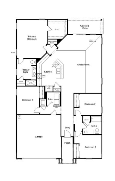This stunning, single-story home showcases a covered entry, farmhouse accents and professional landscaping for extra curb appeal. Inside, discover an open floor plan with volume ceilings and a spacious great room. The modern kitchen boasts an island, 42-in. Woodmont® cabinets, quartz countertops and Whirlpool® stainless steel appliances. The primary suite features a walk-in closet and connecting bath that offers quartz countertops, a dual-sink vanity and walk-in shower with tile surround. Other highlights include ENERGY STAR® certified lighting, Moen® faucets and Kohler® sinks. The covered back patio provides the ideal setting for outdoor entertaining and leisure.