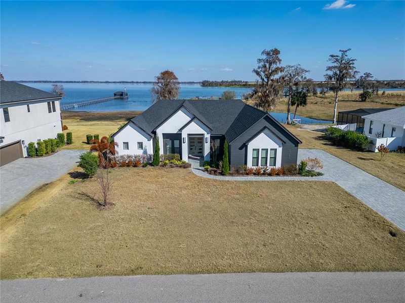 Discover refined Florida living in this stunning lakefront residence, built in 2024, perfectly positioned within a private gated community in the desirable Bartow/South Lakeland area. This impeccably designed 4-bedroom, 3-bathroom Hulbert home features a split bedroom floor plan, home office, and an expansive 3-car garage, offering both elegance and functionality. From the moment you enter, you are captivated by sweeping views of the lake, seamlessly framed by an open-concept Kitchen, Dining, and Living Room designed for effortless living and entertaining. Rich hardwood flooring, custom architectural details, and curated finishes throughout create a refined yet inviting ambiance. The luxurious primary suite is a serene sanctuary, complete with a spa-inspired en-suite bathroom featuring a freestanding soaking tub, walk-in shower, dual vanities, and two generous walk-in closets. On the opposite wing of the home, enjoy two additional spacious bedrooms, two full baths, and a large versatile 4th bedroom, which could be used as a media lounge, game room, or whatever you desire. The spacious Living Room showcases a dramatic beamed ceiling, an elegant electric fireplace with Frame TV, and a custom built-in bar area—perfect for hosting guests or enjoying a quiet morning coffee. The chef’s kitchen is a showpiece, offering a large statement island, custom wood cabinetry, walk-in pantry, Frigidaire Professional Series Side by Side refrigerator, stainless steel appliances, quartz countertops, breakfast bar, and a connected dining area that flows beautifully to the outdoor living space. Step outside to the screened lanai and resort-style saltwater Pebble Tec finished pool, where tranquil water views create a private oasis. With approximately 120 feet of pristine lake frontage, enjoy breathtaking sunrises, serene water vistas, and an ever-changing backdrop of Florida wildlife. This exceptional property offers a rare combination of luxury, privacy, and natural beauty—an extraordinary opportunity to experience the very best of lakefront living. The tennis courts, pickleball courts, clubhouse and community dock are just a short stroll away. A true nature lovers paradise, the highly sought after Riverlake community offers an escape from the hustle and bustle yet it’s conveniently located near the Polk Parkway for easy access to I-4 and close to medical offices, shopping and grocery stores. Don't wait to schedule your private showing today!