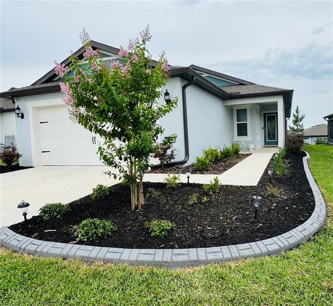 Outside, my yard didn’t get the builder “bare minimum” treatment. I received brand new St. Augustine Floratam sod and enhanced landscaping, so you’re starting with an established look instead of a construction site. I also have IRRIGATION AND RAIN GUTTERS