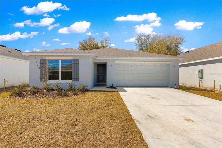 List price includes lot premiums, and finishes, so the list price is the price you pay! Say hello to this already completed Lakeside floor plan from DR Horton. The Lakeside model is very popular, as it features 5 bedrooms and 3 full baths with an open floor plan for a very reasonable price. And the best news is that this one is available TODAY! No need to worry about permitting delays, supply delays, or subcontractor delays, this home is finished and ready for a new owner. When you step inside the front door you'll pass bedrooms 1 and 2 on the left with Jack and Jill bathroom, down the hallway leads you into the open living area. A magnificent kitchen awaits with stone countertops, coffee bar, stainless appliances, and a very nicely sized walk in pantry. The laundry room, and bedrooms 3 and 4 are to your right past the dining area, also with a Jack and Jill bathroom. If you go through the living room you'll find the Primary Suite tucked away for privacy, with a dual sink vanity, and a walk in closet big enough to host a party in. The landscaping is designed for low maintenance, allowing you to spend more time across the street at the community park or taking in the beautiful Florida weather from your patio! Whether you're looking for a quick commute to work in The Villages or looking to spread roots, this property has all the right ingredients to turn house into the HOME you're dreaming of.