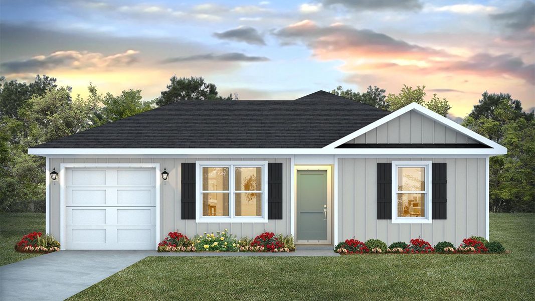 Welcome to 7335 Charles Loring Jr. Road, one of our new homes at Liberty in Panama City, Florida. The Sutton is a spacious single-story home with 1,439 square feet of comfortable living. This beautiful home offers 4 bedrooms with 2 bathrooms, and a 1-car garage. As you enter the home, the foyer welcomes you with beautiful EVP flooring which spans throughout the home in the main areas and bathrooms. Right by the front door are the 3 guest bedrooms, a full bathroom, and down the hallway is the laundry room and storage area leading into the kitchen and living room. Each bedroom boasts plenty of space and sizeable closets for organization with soft carpet flooring.