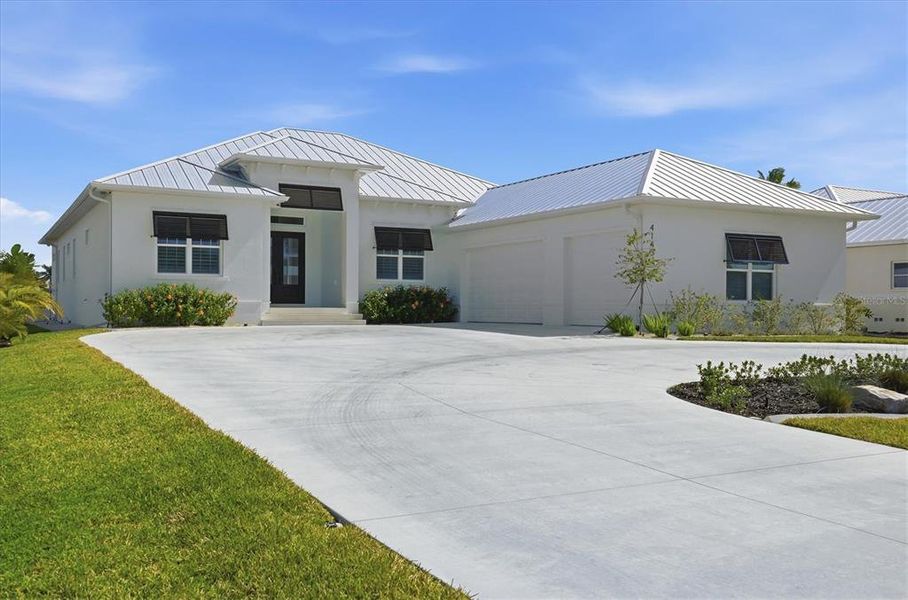 Perfectly positioned on a prime golf course front homesite with breathtaking lake and fairway views, this 2025-built luxury residence showcases awe-inspiring design and uncompromising construction quality. Offering 3 bedrooms plus a spacious den/family room, 3 full baths, and nearly 3,000 square feet under air (approximately 4,700 total square feet), this exceptional home blends elegance, comfort, and superior craftsmanship. A grand double-door entry opens to a dramatic foyer with instant, mesmerizing views of the golf course, lake, and spectacular pool lanai. Expansive living areas are enhanced by soaring 12+ foot ceilings, large-pattern plank tile flooring throughout, and premium designer finishes at every turn. The impeccably appointed kitchen is a true showpiece, featuring stunning Taz Mahal stone countertops, an oversized island wrapped in additional cabinetry, designer tile backsplash, built-in stainless steel appliances, and a generous butler's pantry. The adjoining great room impresses with a towering tray ceiling and a striking large marble feature wall with grand inlay fireplace. A spacious den/family room offers secluded comfort with direct pool access and tranquil views - perfect for relaxing or entertaining. Bathrooms boast exquisite tile work, complemented by premium lighting and plumbing fixtures throughout the home. A bright, oversized laundry room just off the butler's pantry provides abundant storage and workspace. Outdoor living is nothing short of sensational. The heated pool and spa are surrounded by an immense covered lanai, an open-air sitting area with fire pit, and beautiful stone pavers - creating the ultimate setting for quiet evenings or vibrant gatherings. Additional highlights include a metal roof, impact-resistant windows and sliders, a grand circular driveway, and a three-car garage with epoxy-coated flooring and a convenient lift system to the spacious attic. Ideally located in a superb coastal setting just minutes from three marinas, the pristine sandy beaches of Palm Island and Boca Grande, world-class fishing and boating, outstanding private and public golf courses, and within golf cart distance to essential shopping and dining.