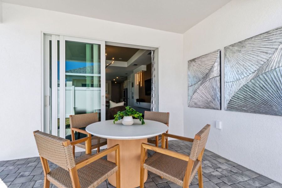 A kitchen awaits with a large center island, beautiful cabinetry, an abundant amount of countertop space, and a pantry to provide extra storage. Across the kitchen is the dining area, followed by the large great room. Sliding glass doors cover the back wall and open to the covered lanai.