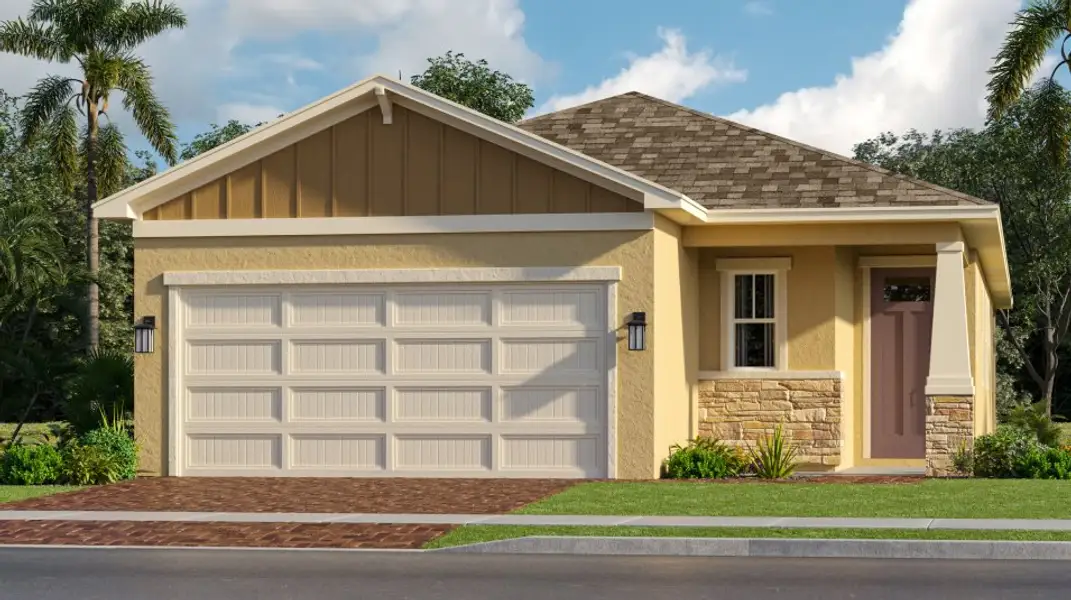 Exclusive to active adults 55+ and better, this new single-story home features a smart layout that prioritizes ease of living. Down the foyer is an open-plan design shared by the kitchen with a center island, dining room and family room, which extends out to the covered lanai. On the opposite side of the home are all three bedrooms to provide a restful retreat, including the owner’s suite with an attached bathroom. At the front is a versatile two-car garage.
