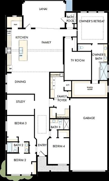 The Owner’s Retreat features a spacious walk-in closet and private spa-like en suite bath designed for everyday comfort. Secondary bedrooms provide privacy for guests or multi-generational living, while the family foyer and laundry room add extra storage and organization. In addition, a four-car garage offers exceptional parking and storage capacity.