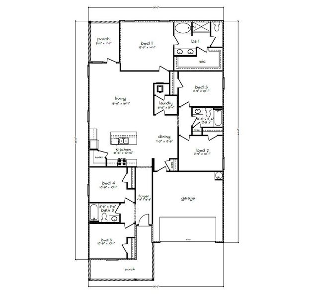 The primary bedroom, located at the back of the home, includes a full ensuite bathroom with dual sink vanity, a separate shower and soak tub as well as a spacious closet. This home includes four comfortable guest bedrooms arranged in two sets on opposite sides of the layout. Each pair shares a full bathroom located between the rooms, making it easy and convenient for family or guests. The design keeps everyone close while still offering a nice sense of personal space.