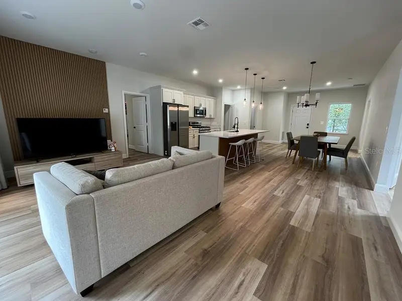 Step inside to an open-concept floor plan filled with natural light—perfect for both relaxing and entertaining. The contemporary kitchen features sleek cabinetry, ample counter space, and a large island that flows seamlessly into the living and dining areas, creating the ideal gathering space.