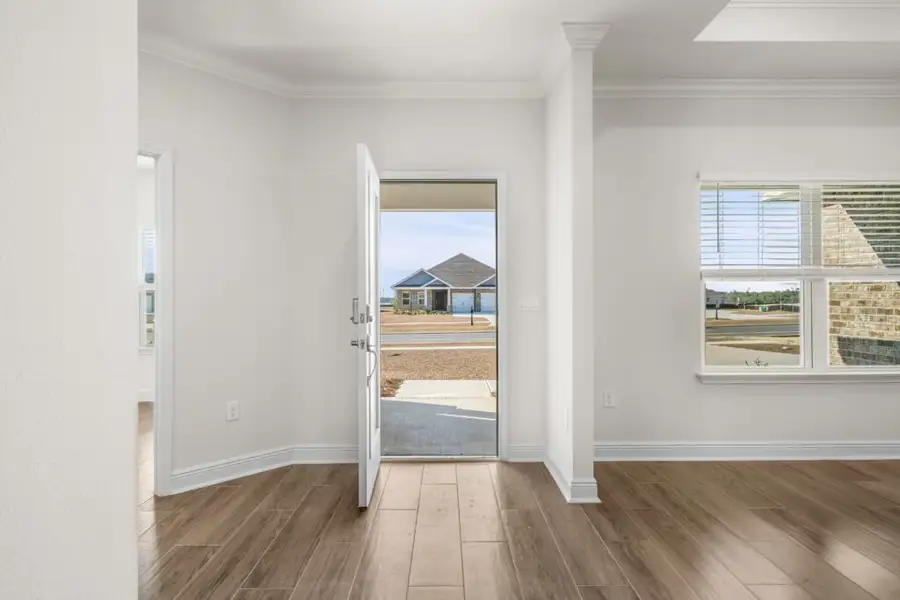 Introducing the Rosemary floorplan from the Cornerstone collection by Holiday Builders. This impressive home offers 4 bedrooms, a den, 3 total baths, a 2-car garage, and 2,750 square feet of luxurious living space. As you enter through the stately covered porch, you’ll step into a welcoming foyer. To the right, a formal dining room awaits, providing an elegant space for hosting dinner parties and special occasions. On the left, you’ll find a private front wing of the home, featuring a versatile den that can serve as an office space, playroom, or easily be converted into a fifth bedroom. Adjacent to the den, there is a bedroom with a walk-in closet, offering comfortable accommodations for guests or family members. A full bathroom is conveniently located just outside these two rooms. Continuing down the hallway, you’ll enter an open concept area that includes a spacious great room, kitchen, and breakfast area. This design allows the whole family to gather and interact seamlessly. The kitchen features a large corner pantry, providing ample storage for your culinary needs. An island with a sink and dishwasher adds functionality to the space. Additionally, there is an option to include a sunroom off the breakfast area, further enhancing the open concept design and providing a bright and inviting space. The owner’s suite is situated in a private corner of the home, away from the other living quarters. It offers a peaceful retreat, complete with an owner’s bath featuring a linen closet and a spacious walk-in closet. Bedrooms 2 and 3 are located down a guest hall on the opposite side of the great room. Each bedroom boasts its own walk-in closet, offering ample storage space. These bedrooms share a full bathroom, and a hallway linen closet provides additional storage convenience. A 2-car garage is easily accessible through the laundry room, ensuring convenience and functionality in daily tasks. At Holiday Builders, we understand the importance of personalization when it comes to your dream home. With the Rosemary floorplan, you have the unique opportunity to tailor your living space to reflect your individual style and preferences. Choose from an array of design options and upgrades, allowing you to create a home that perfectly suits your needs and desires. Alternatively, you can opt for one of our move-in ready homes, expertly crafted with meticulous attention to detail, showcasing the unrivaled craftsmanship that Holiday Builders is known for. Discover the Rosemary floorplan, where every detail is thoughtfully curated to provide a harmonious blend of comfort and elegance. Explore the possibilities that await you, find the new home floorplan that resonates with your lifestyle, and embark on a journey of living the Holiday style. Contact us today to begin your homebuying adventure and embrace a home that embodies your unique vision, where cherished memories are waiting to be made.