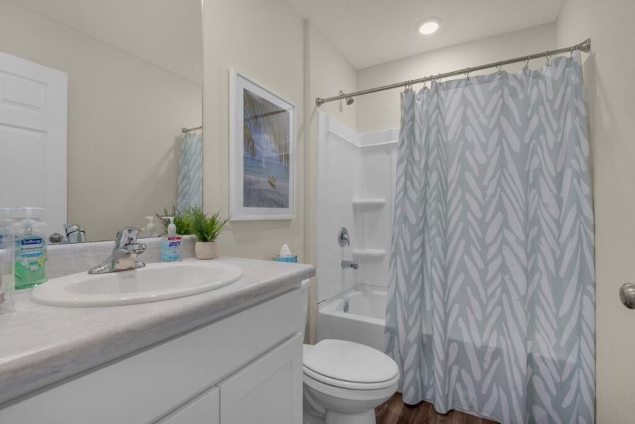 Introducing the Addison, a floorplan from our Value collection. This thoughtfully designed split layout features 3 bedrooms, 2 baths, and a spacious 2-car garage. The great room seamlessly blends with the dining area and kitchen, creating an open and inviting space perfect for hosting gatherings and celebrating holidays. The owners’ suite is a private retreat, boasting an ensuite bathroom complete with linen and walk-in closets. The spare rooms offer ample flexibility, whether you envision them as additional bedrooms, a home office, or a versatile flex room. This split plan ensures abundant privacy while maintaining a cozy atmosphere. Convenience is key in the Addison. The laundry room is conveniently located just steps away from the garage, optimizing storage and parking space. This home showcases our commitment to quality construction, featuring CBS construction and a range of energy-smart features. These include a digital thermostat, a heating, ventilation, and A/C system, roof vent and soffit for attic ventilation, and energy-efficient dual pane windows. Rest assured, this home is backed by our comprehensive warranty package. All Holiday Builders homes, regardless of collection, include a 1-year transferable builder warranty and a 10-year structural warranty. Why settle for renting when you can own a home like the Addison? To make the buying process easier on your wallet, we’ve pre-selected standard laminate countertops, vinyl flooring with cozy carpeting in the bedrooms and living areas. This ensures your savings are considered without compromising on style and quality.