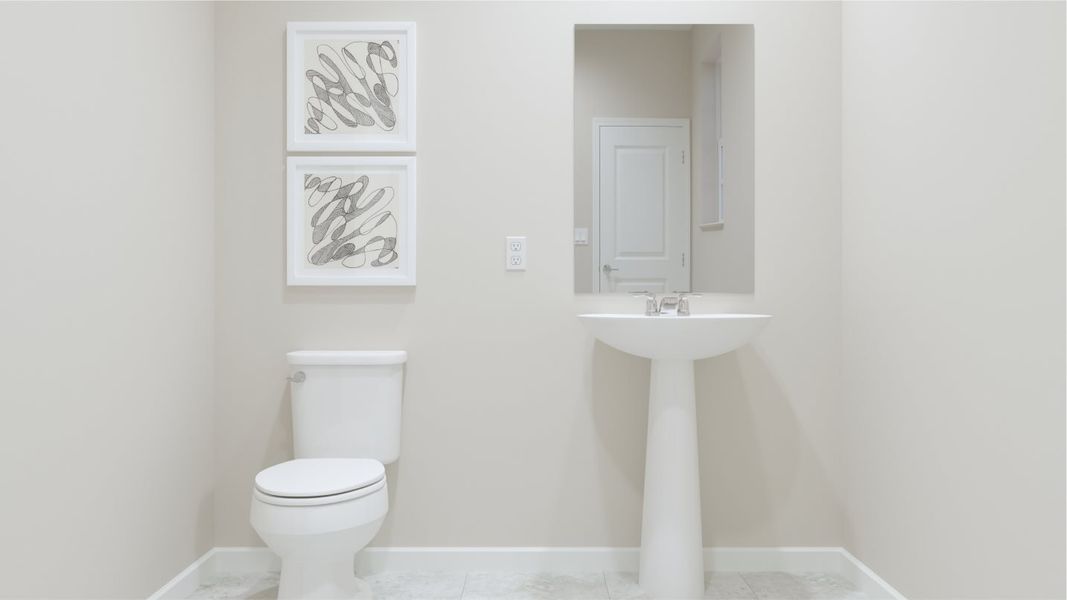 This two-story home features a convenient flex space off the foyer, followed by an open-concept layout among the kitchen, breakfast nook and family room to promote seamless transitions between spaces. For outdoor living, there is a charming front porch and rear covered patio. Upstairs are two secondary bedrooms with a shared bathroom, along with the lavish owner’s suite and private resort-style bathroom.