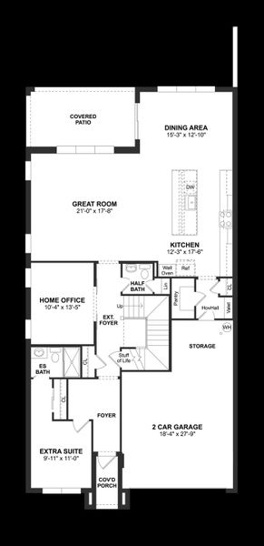 The Wicklow IV delivers an impressive 3,684 square feet of living space with 5 bedrooms and 4.5 bathrooms designed for modern lifestyles. A first-floor Extra Suite with private bath offers comfort and convenience for guests. A private home office with stylish barn doors provides the perfect remote work setting. The light-filled great room showcases views of the covered patio and backyard and flows into a spacious kitchen with a sizable pantry and charming adjacent dining area. Upstairs, you'll find a versatile loft, conveniently located laundry room, and generously sized bedrooms, including Bedrooms 3 and 4 sharing a three-quarter bath. The elegant primary suite features a huge walk-in closet and a private bath designed for relaxation. Residents enjoy resort-style amenities steps from home and an outstanding location just 11 miles from downtown West Palm Beach and 15 miles from the Atlantic Ocean.