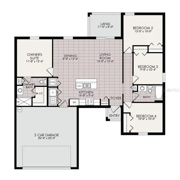 NEW BUILD - Anticipated completion date is April 24, 2026. SPECIAL INCENTIVES: 4.75% fixed rate FHA/VA financing with some closing cost assistance OR up to $18K in closing cost assistance / prepaids when using a preferred lender. The 1,426 -square-foot (air-conditioned) Windsor plan boasts a well-designed open floor plan that includes four bedrooms, two bathrooms, and a two-car garage. The kitchen boasts upgraded 30” contemporary shaker-style cabinets, a spacious kitchen island with upgraded quartz countertops, Whirlpool dishwasher, microwave, and range, refrigerator, washer & dryer. The Kitchen overlooks a spacious great room that features beautiful tile-plank flooring and vaulted ceilings. The expansive owner’s suite features a private bathroom, with a separate linen closet, and large walk-in closet. The three guest bedrooms share a guest bathroom and are located opposite the owner’s suite. The Windsor also features a decorative brick paver driveway, a professionally designed landscaping package, and designer-selected paint colors, light, and plumbing fixtures, impact resistant windows and doors.