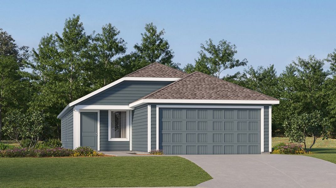 This new four-bedroom home offers convenient single-story living. An open-concept floorplan maximizes interior space and encourages seamless transitions between a modern kitchen, elegant dining room and comfortable family room. Three secondary bedrooms are tucked away to the side of the home, while a luxurious owner’s suite is nestled into a private rear corner, complete with a full bathroom and walk-in closet.