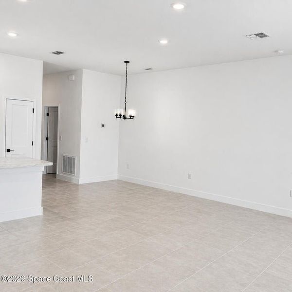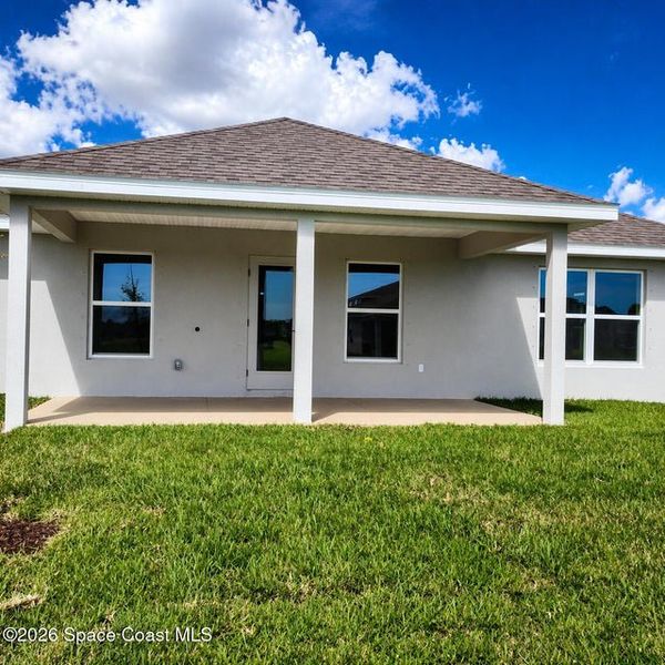Welcome to this stunning 3-bedroom, 2-bath home where style and comfort combine to offer a bright, open, split layout perfect for relaxing or entertaining. The heart of the home is the kitchen, featuring sleek stainless steel appliances, ample counter space, large island, and a large pantry-perfect for culinary adventures and entertaining. The open living and dining areas extend to a spacious covered porch, inviting you to soak in Florida's sunshine and breezes. The split-bedroom layout ensures privacy, with a serene owner's suite that boasts dual vanities, tiled floors, separate shower, a soaking tub, and a private water closet.