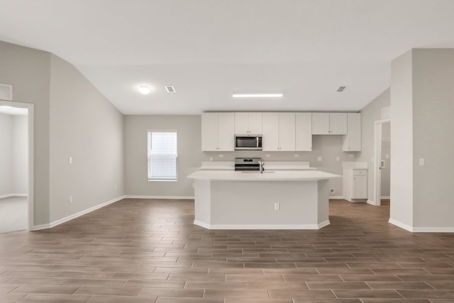 The Ft. Caroline home plan offers a harmonious blend of comfort and functionality. Boasting 4 bedrooms, 2 bathrooms, and 2,088 square feet of meticulously designed living space, this residence embodies modern living at its finest. The open-concept layout seamlessly merges the modern kitchen, dining area, and spacious living room, providing an ideal space for both entertaining and relaxation. With a 2-car garage and chic finishes throughout, the Ft. Caroline home plan presents an inviting opportunity for those seeking a stylish and convenient lifestyle in a thriving community setting.Photos are representative of a Ft. Caroline Floorplan**