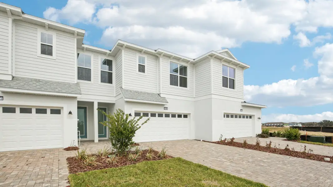 2 Level Home with 3 Bedrooms! Located in the gated community of Isla Mirada within the Mirada master-planned development, this Aruba floorplan offers a functional two-story layout with upgraded interior finishes and abundant natural light throughout. The home features three bedrooms, two and a half bathrooms, and an open-concept main living area designed for comfortable everyday living and entertaining. Large windows allow for a strong amount of natural light, enhancing the main living spaces. Luxury Vinyl Plank flooring extends throughout the main level, and the kitchen showcases upgraded light blue cabinetry, creating a distinctive focal point with a modern coastal feel. Upstairs, the primary suite is privately situated along with two additional bedrooms and a full bath. A 2-car garage provides added storage and convenience. Enjoy a covered lanai overlooking a peaceful pond view with no rear neighbors. Community amenities include gated access, proximity to the 15-acre Mirada Lagoon, and convenient access to shopping, dining, and major roadways.