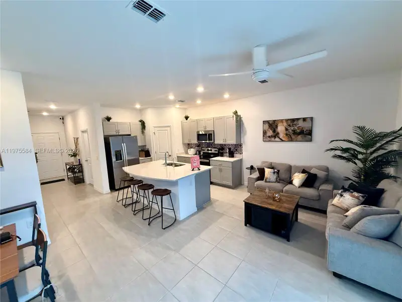 Charming townhouse with 1,373 square feet of living space. 3 bedrooms, 2.5 baths, and a one-car garage. Jasmine Model. Open kitchen and spacious outdoor patio. Features Quartz countertops, upgraded cabinets, tile throughout first floor. Nicely decorated.