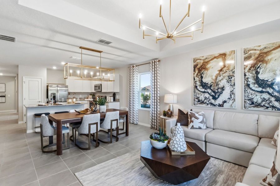 Open-concept living space that seamlessly connects the kitchen, dining, and family areas