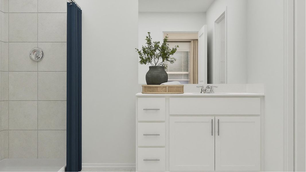 This new home is laid out on a single level for low maintenance living. Two secondary bedrooms share a bathroom in the hall at the front of the home, while the owner’s suite is tucked into the back corner with an attached bathroom and walk-in closet. Down the foyer is the open-concept living area, which includes a fully equipped kitchen, an intimate dining room and family room with patio access. Completing the home is a convenient two-car garage.