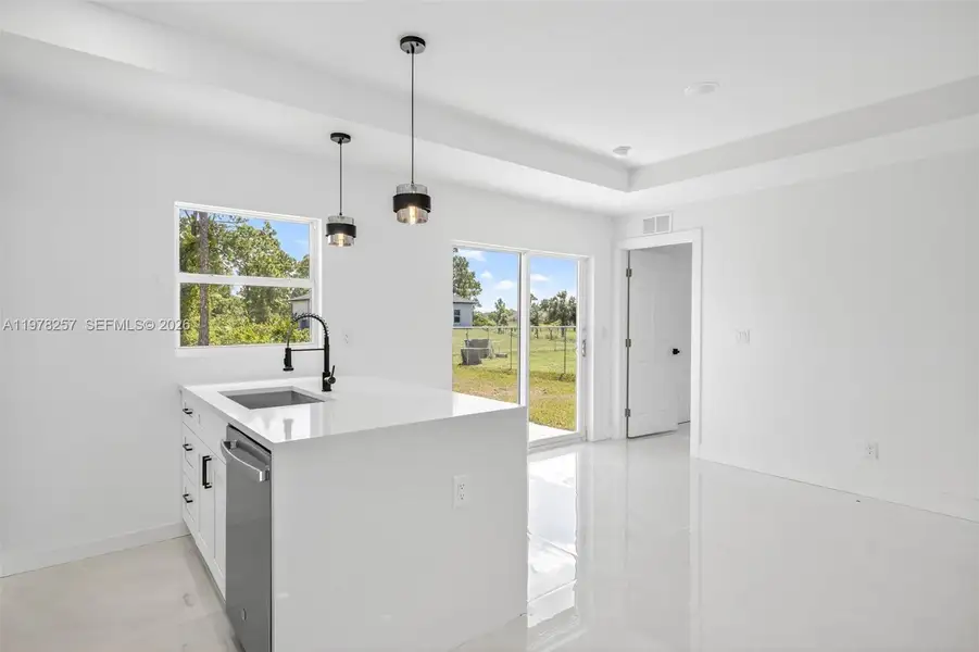 SELLER CREDIT TOWARD BUYER'S CLOSING COSTS + EXTENDED WARRANTY. *Move-in ready 3-bed, 2-bath home in the most desirable Lehigh Acres location! CO in hand and seller offering incentives. Bright, open floor plan with large tile flooring, tall kitchen cabinets with integrated LED lighting, and designer light fixtures throughout. Luxurious bathrooms feature full-size backlit mirrors and high-end finishes. Epoxy-coated garage floor adds style and durability. Professionally landscaped front yard boosts curb appeal. Conveniently located near Sunshine Boulevard (Main Street), shopping, schools, and major roads. Schedule your showing today — this home won’t last!