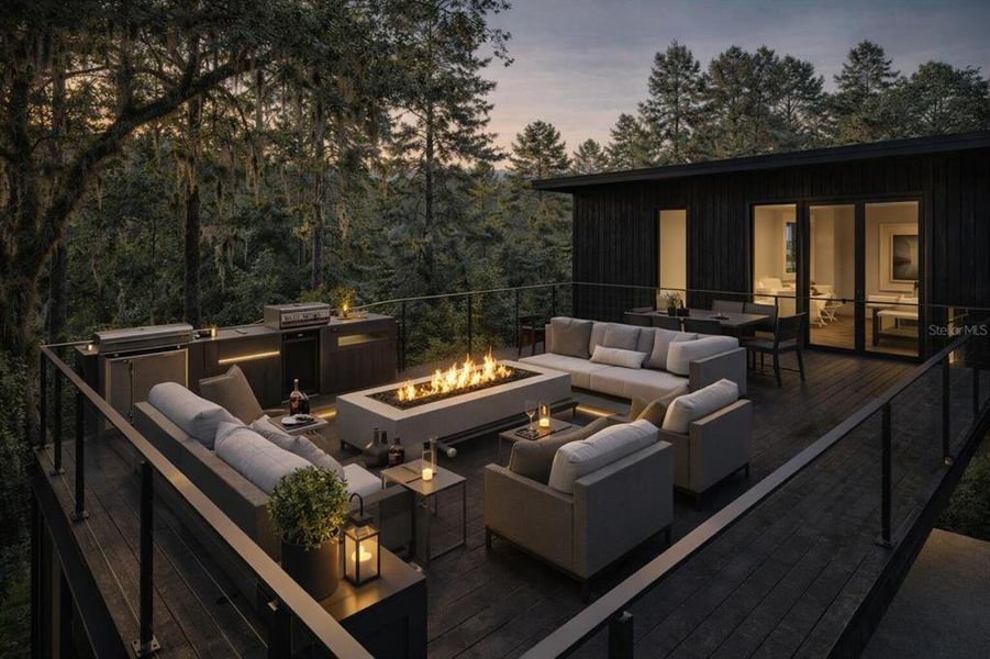Thoughtfully designed modern retreat emphasizing light, flow, and connection to its surroundings. This architecturally distinctive home displays approximately 849 sq ft of interior living space complemented by over 1,200 sq ft of decks, rooftop terrace, and outdoor living areas, creating a seamless indoor–outdoor experience.