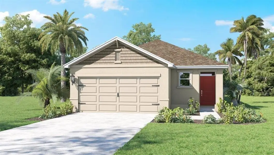 Avalon Park Tavares presents the Allex, available to build in Tavares, Florida. This all concrete block constructed, one-story layout optimizes living space with an open concept. As you enter the foyer you are greeted with a spacious dining room. Go down the hallway and enter a spacious kitchen featuring stainless steel appliances with ample counter space and a walk-in pantry for extra storage. The living room is complete with a view to the covered lanai outside. Bedroom one, located at the back of the home for privacy, has an en-suite bathroom that features a double vanity sink with a walk-in closet. Two additional guest bedrooms and one bath are tucked away down the hall from the Dining Room. The laundry room is located at the front of home near the two-car garage. Like all homes in Avalon Park Tavares, the Allex includes a Home is Connected smart home technology package which allows you to control your home with your smart device while near or away.Photos are of similar model but not that of the exact house. Pictures, photographs, colors, features, and sizes are for illustration purposes only and will vary from the homes as built. Home and community information including pricing, included features, terms, availability, and amenities are subject to change and prior sale at any time without notice or obligation. Please note that no representations or warranties are made regarding school districts or school assignments; you should conduct your own investigation regarding current and future schools and school boundaries.