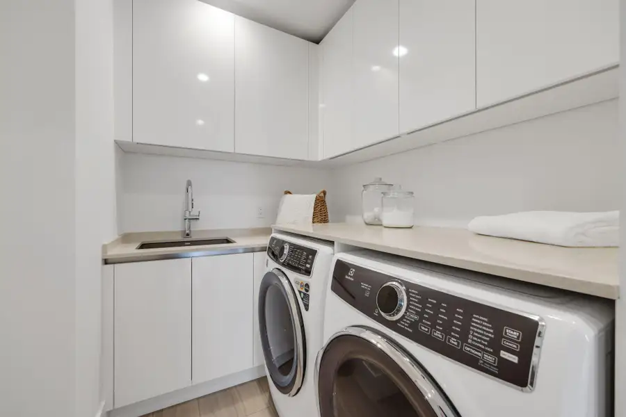 The primary suite is a private sanctuary, featuring dual walk-in closets, a built-in coffee bar, a tranquil sitting area, and a spa-inspired bathroom. Additional luxury details include side-by-side laundry, smart-home readiness, pre-wiring for electric vehicle chargers and motorized shades, and impeccable attention to detail throughout.