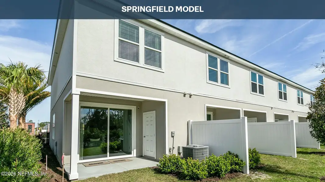 The Springfield townhome is a thoughtfully designed floor plan that offers a surprising amount of space and comfort within approximately 1,308 square feet. With three bedrooms and 2.5 bathrooms, this inviting two-story home is ideal for homeowners seeking a functional layout that still feels open and bright. The main level features a seamless flow between the kitchen and living area, creating a welcoming environment for both relaxing and entertaining. The kitchen is designed with ample counter space and storage, making meal preparation easy while staying connected to family and guests in the adjacent living room. Sliding glass doors bring in generous natural light, filling the home with warmth and enhancing the open feel of the living spaces throughout the day. Upstairs, the primary suite provides a peaceful retreat, complete with a spacious walk-in closet and a well-appointed bathroom with a large vanity. Two additional bedrooms offer flexibility.