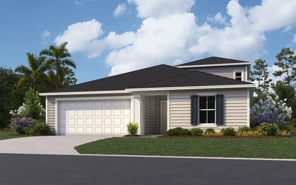 This spacious home offers a perfect balance of comfort and versatility, featuring a thoughtful layout designed for modern living. The primary suite, located on the main floor at the back of the house, provides a private retreat with a luxurious en-suite bath and ample closet space. The heart of the home is the open-concept living area, where a café and great room create an inviting space for relaxation and entertainment. Large windows overlook the lanai, seamlessly blending indoor and outdoor living. An optional gourmet kitchen is available, offering top-of-the-line appliances and a generous island for cooking and gathering. Upstairs, a versatile bonus room with a full bath offers additional living space, perfect for a guest suite, home office, or media room. This home combines function and style, making it ideal for families or those who love to entertain.Photos are representative of a Mayport II Floorplan**