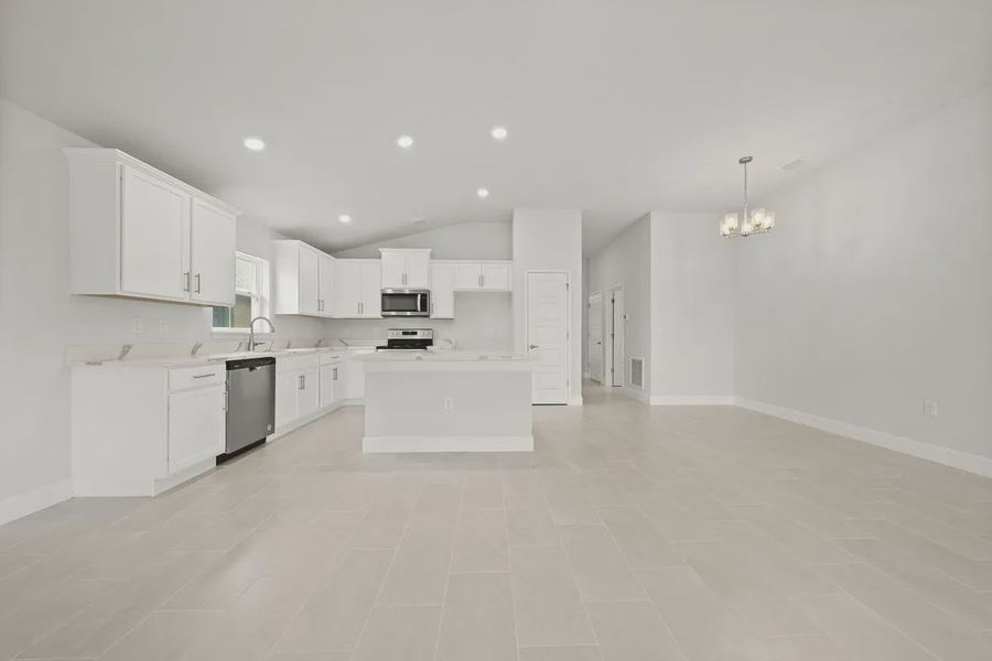 Welcome to the thoughtfully designed 1720 floorplan where comfort, and modern living come together in this 3-bedroom, 2-bath home. Can you imagine yourself relaxing on your trussed porch overlooking a lake enjoying fresh air and peaceful surroundings--your own space to unwind. This exceptional floor plan offers a kitchen island overlooking the dining and family room, making it one of the perfect designs for those who love to connect with family while in the kitchen. The private owner's suite provides a relaxing escape with dual vanities and a spacious walk-in closet. This is more than a home its a lifestyle