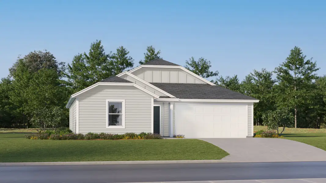 This new single-story home offers a modern and low-maintenance layout. Two secondary bedrooms surround a full bathroom at the front of the home, leading to an open-concept layout shared between the kitchen, living and dining areas. A lavish owner’s suite is nestled into a private rear corner and features an en-suite bathroom and walk-in closet.