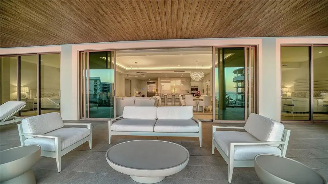 A defining feature of this residence is the expansive private terrace, where all principal rooms open seamlessly to the outdoors. Complete with a gas grill, this exceptional outdoor living space provides sweeping views of the Gulf of Mexico and the tranquil lagoon—creating the perfect setting for al fresco dining, entertaining, or simply enjoying spectacular sunsets over the water. The gourmet kitchen is a true showpiece, appointed with sleek Poggenpohl cabinetry and premium appliances including Wolf double ovens, a gas cooktop, microwave, icemaker, and wine refrigerator. A generously sized island provides abundant built-in storage, making the space as functional as it is beautiful. This thoughtfully designed floor plan features two luxurious owner’s suites. The primary suite enjoys stunning views of the Gulf of Mexico and opens directly onto the large terrace. The spa-inspired bathroom features a large double vanity with elegant lighted mirrors plus a separate makeup vanity, two private water closets, a seamless glass shower, and a freestanding soaking tub. Electronic sheers and blackout shades provide effortless ambiance and privacy, while a custom-built closet offers exceptional storage. The second owner’s suite also captures captivating Gulf views and opens onto the terrace. Its spacious bath includes dual vanities with lighted mirrors, one water closets, and custom-built closets. Electronic sheers and blackout shades add both convenience and luxury. Additional highlights include a large laundry room with sink, cabinetry, and hanging rack, as well as an elegantly designed powder room for guests. Offered completely turnkey, the residence is beautifully furnished and enhanced with custom light fixtures throughout, creating a sophisticated yet inviting coastal retreat. Nestled within the first branded residential community and ultra-luxe 5 star resort on the Gulf of Mexico. The Residences at The St. Regis Longboat Key blend legendary service with the allure of a seaside getaway. Spanning over 17 acres with 800 feet of direct beachfront, this community offers unparalleled amenities, including the signature St. Regis Butler and Concierge services, a world-renowned St. Regis Spa, in residence dining. Resident only amenities include a clubhouse, fitness center, pool/spa and beach area. Enjoy your private resident only amenities, while having access to all the resort has to offer. Live like you are on vacation all year round!