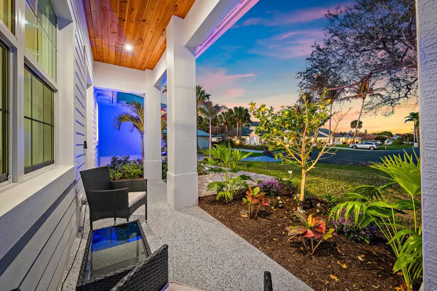 Newer construction in Hobe Sound is rarely available, making this 2024-built home a unique opportunity for buyers seeking modern living just minutes from the beach. Located at the end of a peaceful cul-de-sac, the property enjoys a naturally elevated setting that gives it a commanding presence as you approach, while still being close to Hobe Sound's best restaurants, shopping, and coastal amenities. A split floor plan provides privacy, while the open-concept kitchen and living areas flow seamlessly to covered patio spaces in both the front and backyard, each finished with beautiful tongue-and-groove ceilings. The rear patio is the perfect place to relax, grill, and enjoy sunset views overlooking the spacious backyard with newly installed landscaping. The oversized primary suite serves as a private retreat, featuring a large walk-in closet, dual vanities, a generous walk-in shower, and a separate soaking tub. A dedicated laundry room and two-car garage add everyday convenience. New and newer-construction homes in Hobe Sound are extremely limited and rarely come to market. For buyers looking for a modern, move-in-ready home without the time and uncertainty of building, this property presents a rare opportunity.