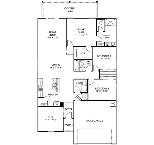 Configure the flex room in the front to fit your lifestyle - an at home office space or a hobby space. Past the foyer, the open kitchen flows to the dining space, great room and outside lanai. The private primary suite offers a spacious area to relax.
