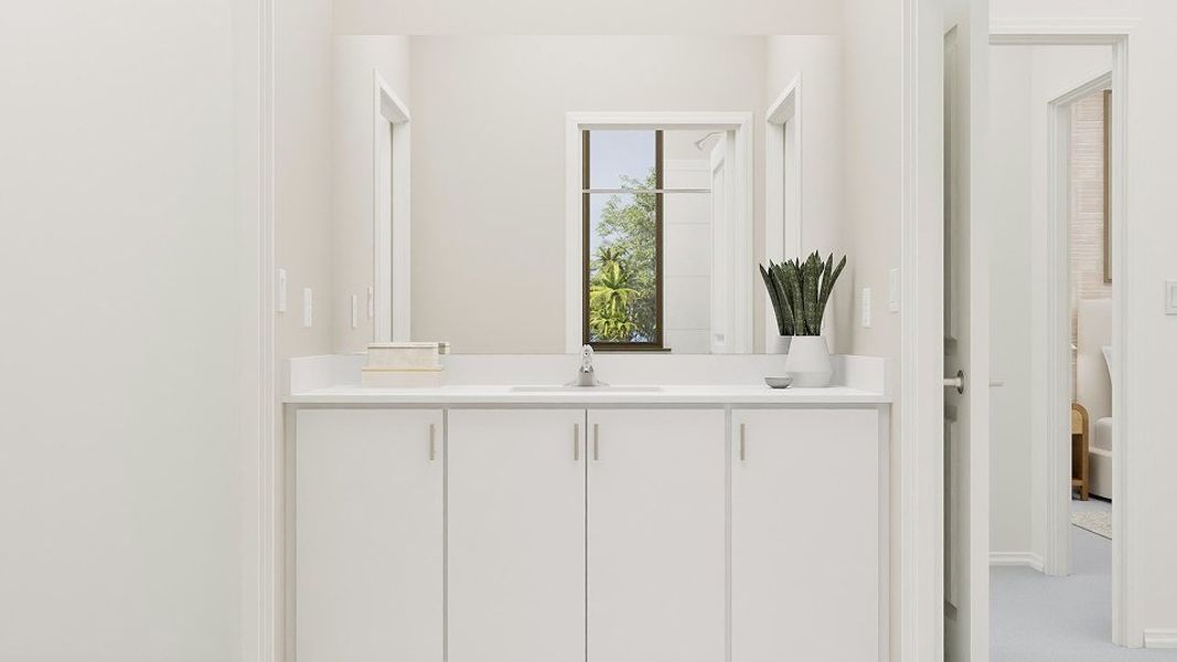 Upon entry into this new two-story twin home is a formal living room ideal for hosting guests, which seamlessly flows into the open-concept living area. It includes a sunny dining room, a modern kitchen and a spacious family room with direct access to the covered terrace. Residing on the top floor is a loft surrounded by three secondary bedrooms and a tranquil owner’s suite, complete with a private bathroom and balcony.