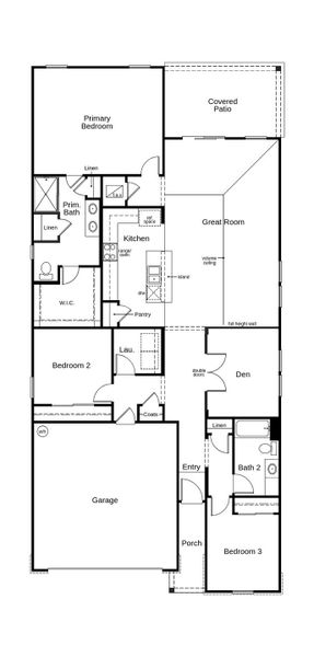 This stunning, single-story home showcases a covered entry, farmhouse accents and professional landscaping. Inside, discover an open floor plan with volume ceilings, tile flooring and a spacious great room. The kitchen boasts Woodmont® cabinets, quartz countertops, a wet island and Whirlpool® stainless steel appliances. The primary suite features a walk-in closet and connecting bath that offers quartz countertops, a linen closet, dual-sink vanity and walk-in shower with tile surround. Enjoy the convenience of a dedicated laundry room. Other highlights include a den, ENERGY STAR® certified lighting, Moen® faucets and Kohler® sinks. The covered back patio is perfect for outdoor entertaining and leisure.