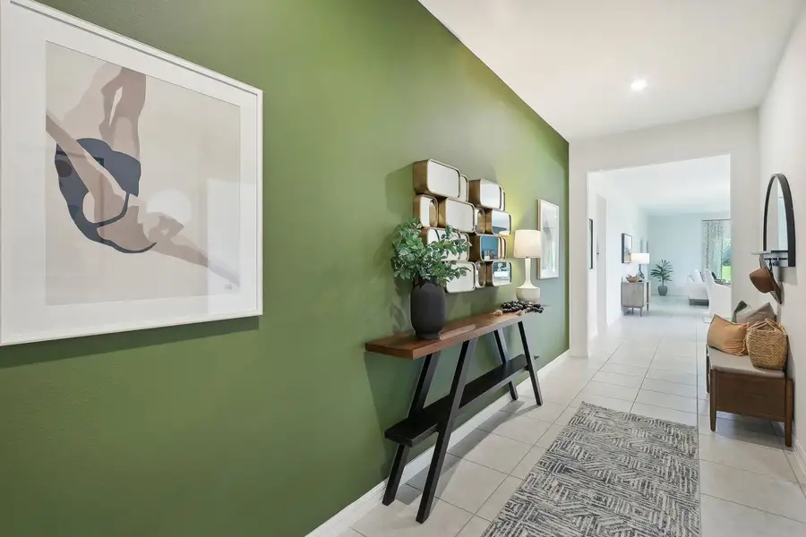 Welcome to the Webber, a stunning single-family home nestled in the vibrant Groves at Whitemarsh neighborhood of Leesburg, Florida. This spacious 2,210 square-foot residence is designed for modern living, featuring four well-appointed bedrooms and two full bathrooms. The heart of the home is the inviting kitchen, which seamlessly overlooks the dining and living areas, creating an ideal space for family gatherings and entertaining. Natural light floods the main living area through the outdoor patio, enhancing the warm and welcoming atmosphere.