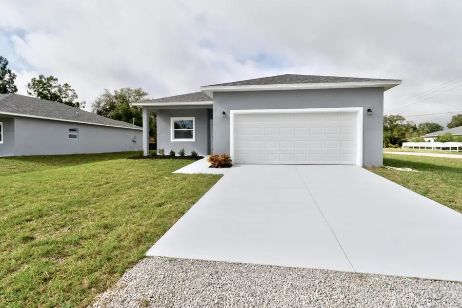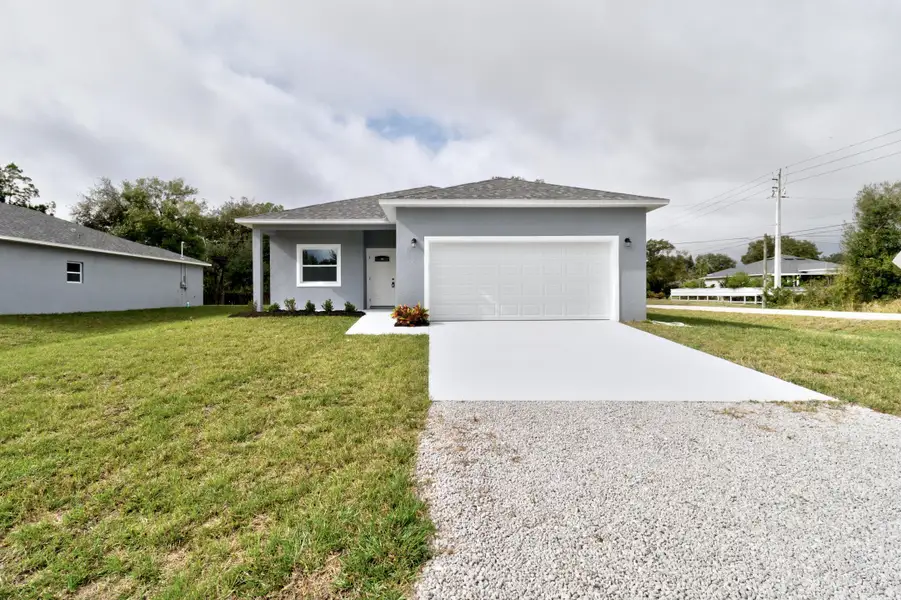 WELCOME HOME-2025 built CBS split floorplan home! BEAUTIFUL kitchen with quartz countertops and Frigidaire SS appliances, windowside breakfast nook, pantry & 5 burner stove. The GREAT room offers space for dining and living...or whatever fits your lifestyle. ALL impact windows and doors,Vinyl floorings throughout, 9+foot ceilings. Primary bedroom has walk in closet, dual sinks, large step in shower. Otherside has 2 bedrooms & guest bath +large laundry room, recessed lighting, ceiling fans and much more. Nice large garage, with pull down attic storage. On county water, 1st home off paved road COMES WITH NEW BUILD WARRANTY COMES WITH NEW BUILD WARRANTY