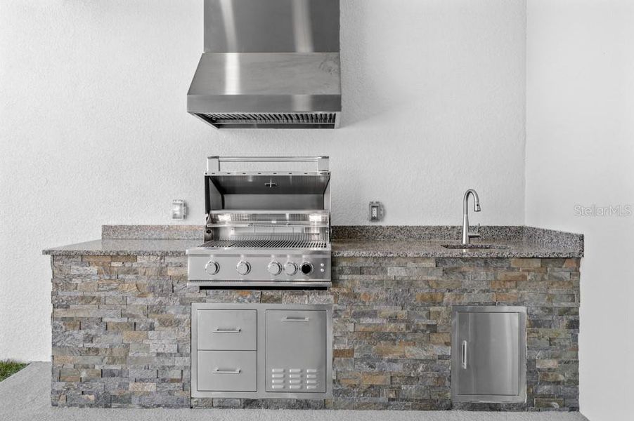 Sliding glass doors lead to the expansive covered outdoor kitchen, extending your living space outdoors and creating the perfect setting for relaxing evenings or entertaining guests. A welcoming covered front porch adds even more charm and curb appeal.