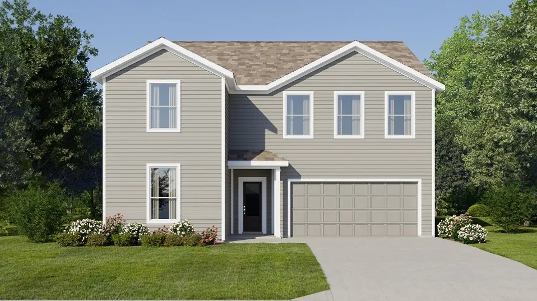 This new two-story home features a first-floor owner’s suite, offering a private retreat with a full bathroom and walk-in closet. An additional bedroom is located near the front of the home, steps from a full bathroom. A spacious and flexible open-concept layout blends the kitchen, living and dining areas, while a nearby flex space provides the perfect spot for a home office or studio. On the second floor, a versatile game room provides a shared living area easily accessible from three additional bedrooms.