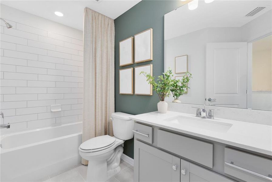 Every inch of this townhome was thoughtfully designed to best meet your needs, making your life better, happier and easier. This gorgeous move-in ready interior-unit Springdale two-story townhome features our Craftsman exterior, Move-In Ready Appliance and Window Blind package, Premier Natural design package, 3 bedrooms, 2 full bathrooms, a powder room, a single-car garage, and a covered lanai. The spacious first floor is ideal for entertaining, featuring a powder room, open concept gathering room, café and kitchen and a covered lanai. The kitchen is equipped with a pantry, modern gray cabinetry, Lagoon quartz countertops, a Suite Arabesque ceramic tile backsplash, and beautiful Positano Blanco tile flooring. After a long day, retreat upstairs to your private oasis. The Owner's Suite features a spacious walk-in closet and en suite bathroom with a double sink quartz-topped gray vanity, a linen closet, private water closet and walk-in shower. Two additional bedrooms, the secondary bathroom and the laundry are also on the second floor, offering privacy and space for everyone. Professionally curated design selections for this popular Springdale townhome include a washer, dryer, refrigerator, blinds, upgraded Elkins cabinetry with quartz countertops, designer tile accents in the kitchen and showers, Positano Blanco porcelain tile flooring in the living areas, bathrooms and laundry room, soft, stain-resistant Ornamental Gate carpet in the bedrooms and second floor living areas and so much more!