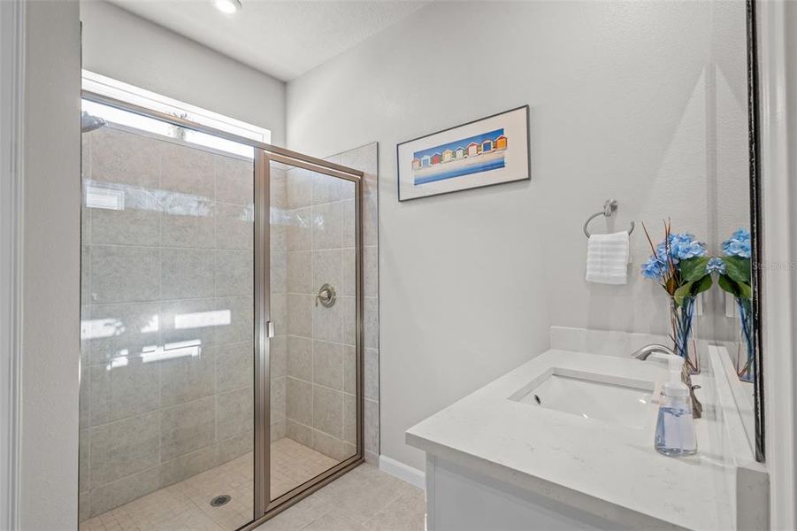 The rest of the home includes two additional rooms. One is currently being used as an open office space that could easily be enclosed if a third bedroom is desired, while the other is a traditional bedroom. A full bathroom serves this portion of the home. Every room in the home has been upgraded with ceiling fans with integrated lighting and remote controls.