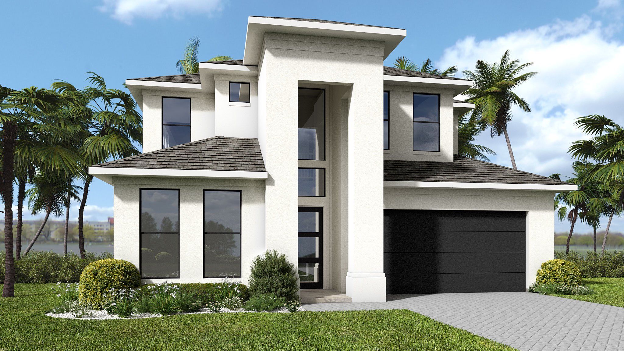 Front porch opens into a two-story entryway that is embraced by French doors that welcome you into the secluded home office. Past the staircase you enter the kitchen space which features an island with built-in seating and an oversized walk-in pantry. The dining area connects the space to the family room. Natural lights from the sliding glass doors leads into the backyard covered lanai and extended ceilings complete the family room. The primary bedrooms boasts three large windows. Double doors lead into the primary bathroom which features dual vanities, a freestanding tub, glass enclosed shower, and large walk-in closet. A secluded guest suite with a full bathroom is located across the dining area. Upstairs you are greeted by a large game room overlooking the first floor. Two secondary bedrooms and a full bathroom complete the second level. Ample storage space throughout the home along with a conveniently located laundry room off the drop zone. Two-car garage.
