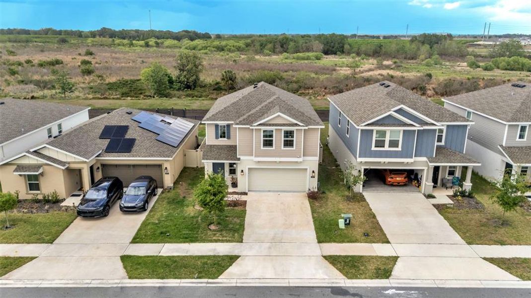 Welcome to this beautifully designed two-story, 4 bedroom, 2.5 bathroom home, built in 2024 and located in the desirable Peace Creek Reserve community. This modern residence offers a functional layout, stylish finishes, and a peaceful setting with no rear neighbors. As you enter, you’re greeted by an inviting open floor plan that seamlessly connects the living room, dining area, and kitchen—perfect for everyday living and entertaining. The kitchen features stainless steel appliances, a built-in pantry, ample cabinetry and counter space, quartz countertops, and a large island overlooking the living room. A convenient half bathroom is located just off the kitchen on the first floor. Upstairs, the primary bedroom offers a comfortable retreat with an ensuite bathroom complete with dual sinks, a walk-in shower, and a spacious walk-in closet. The three additional bedrooms are thoughtfully split around the second full bathroom. The laundry room is also located on the second floor for added convenience. Step outside to enjoy the recently added large screened-in patio, ideal for relaxing or hosting gatherings while enjoying the privacy of a fenced-in backyard and no rear neighbors. Residents of Peace Creek Reserve enjoy access to a community pool and playground. The home is conveniently located near a variety of retailers, restaurants, and the famous Chain of Lakes, offering endless recreation and convenience.