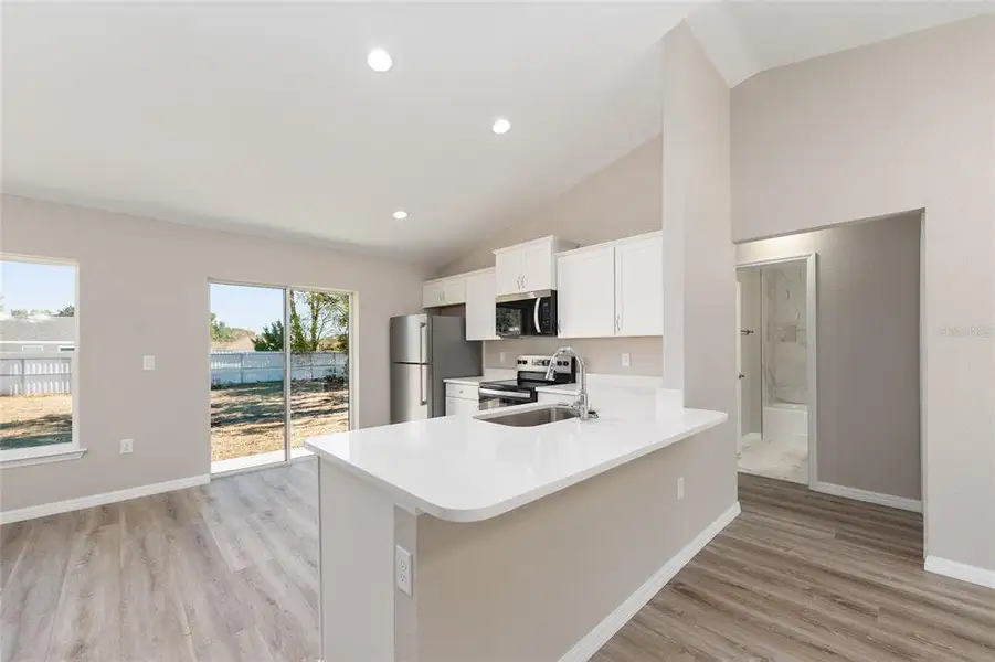 Welcome home to this charming, light-filled new construction that’s truly move-in ready! This thoughtfully designed home features an open-concept layout with luxury vinyl plank flooring throughout—no carpet anywhere for easy maintenance and modern appeal. The stylish kitchen is a standout, showcasing elegant quartz countertops, classic white shaker cabinetry, and plenty of space for cooking and gathering. For added peace of mind, a builder’s warranty is included. Ideally located near Ocala and The Villages, you’ll enjoy convenient access to shopping, dining, and entertainment while still having a quiet place to call home.
