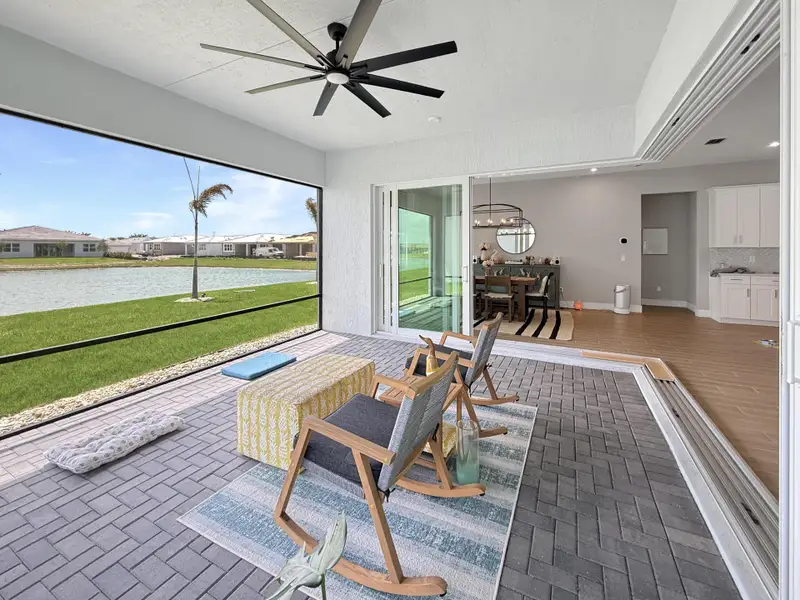 SELLER OFFERING $20,000 TOWARD CLOSING COSTS! This is NOT your basic home! This home is carefully curated with no corners cut and high-end upgrades and finishes throughout! Located in the sought-after 55+ community of Telaro at Tradition, this fully upgraded home features wood-grain tile throughout, upgraded lighting, and a stunning 7-panel L-shaped slider. And let's talk about the view...enjoy a wide lake view on the largest lot in the community with room for your dream pool! The gourmet kitchen showcases a herringbone backsplash, farmhouse sink, gas cooktop, upgraded appliances, and custom cabinetry. Spa-like primary suite with soaking tub and custom closets. Screened patio, custom pantry, whole-house water system & more! SELLER OFFERING $20,000 TOWARD CLOSING COSTS! Stunning lake view with extensive upgrades throughout. This home was thoughtfully designed with high-end finishes and no corners cut. Interior features include upgraded wood-grain tile flooring throughout, upgraded baseboards and trim, enhanced lighting with recessed fixtures in main living areas and primary suite, and a dedicated coffee bar with 20-amp outlet. Gourmet kitchen upgraded to highest level with custom herringbone backsplash, farmhouse sink, Moen spiral faucet, natural gas cooktop, upgraded appliances, and custom pull-out cabinetry added post-closing. Custom pantry with glass door, built-in countertop, and additional storage. Primary suite features upgraded tile work, freestanding soaking tub, large window, and two custom walk-in closets. All bathrooms upgraded with modern vanities, sinks, lighting, and Moen Align plumbing fixtures. Additional upgrades include French doors to flex room, laundry room plumbing for sink, upgraded laundry tile, epoxy garage flooring, belt-driven garage door opener, and whole-house water filtration system including softener, UV light, and reverse osmosis with remineralization. Exterior enhancements include screened lanai, expanded paver areas, custom courtyard with river rock and stepping stones, privacy landscaping, improved drainage system, generator hookup (50 amp), and natural gas dryer. Home has been professionally inspected multiple times, including pre-drywall, pre-closing, post-closing, and one-year inspection.