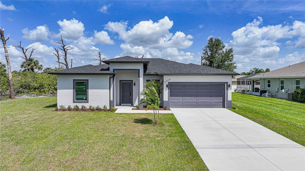 Brand new MOVE IN READY home outfitted with elegant and high quality materials. This is a spacious 4/2/2. Upon entering the home you'll be greeted with a large open space with tons of natural light coming through the IMPACT WINDOWS AND SLIDERS. The home is outfitted with a beautiful porcelain tile throughout the entire home. The kitchen features a large quartz island, soft close cabinetry, lots of counter space, stainless steel appliances and a charming stone tile back-splash. The home has a private split bedroom layout boasting large bedrooms. The primary bedroom boasts a large walk-in closet and an on-suite bathroom with a double vanity sink and a large walk-in shower with a beautiful marble look. The light and bright style of home is the perfect canvas for you to decorate any-way you see fit. NO FLOOD ZONE, NO HOA AND NO DEED RESTRICTIONS. This location is super close to Englewood Beach, Manasota Key Beach, and Boca Grande beach as well as the Historic Dearborn Street where you'll find amazing restaurants, farmers markets and more. Spring Training Baseball is right up the road at Charlotte Sports Park and Cool Today Park. Close proximity to Grocery shopping, hardware stores, medical offices and Englewood Hospital. Be sure to view the 3D VIRTUAL TOUR. Florida is calling your name!