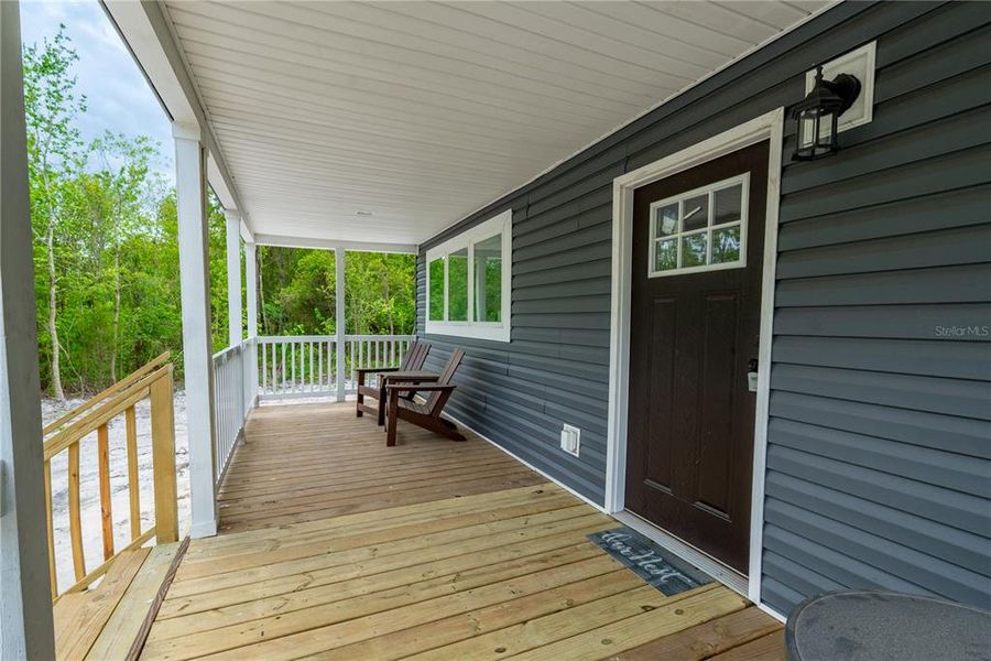BRAND NEW home on the premium lot 4 of Sanctuary. This home has been eloquently furnished with a hand-picked package from Magnolia House. 1,260sqft, 3/2 with a bonus 200sqft+ porch. Brand new well, septic, and all utilities. Upgraded interior package with installed window treatments throughout. This model has all the extras, from the shiplap accent walls to the premier drywall and crown moulding, every detail has been thought of. Just off the laundry room, you can take in the wooded views of 1+ acre lot on the covered porch. You'll have plenty of room to spread out and enjoy nature on a lot which has been intentionally cleared in a way to preserve larger vegetation and your privacy. Reap the benefits of calm, country living while still being minutes from shopping, local schools, and under 1hr to Gainesville and Jax. Home is in final stages of construction. Virtual staging has been performed to the exterior yard, but all furniture shown in pictures is in place and included in the sale.